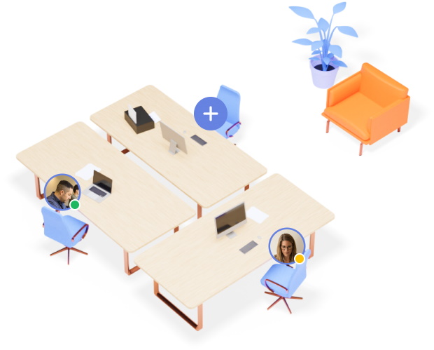 Ваши сотрудники могут самостоятельно забронировать рабочее место: стол, кабинет или переговорную комнату